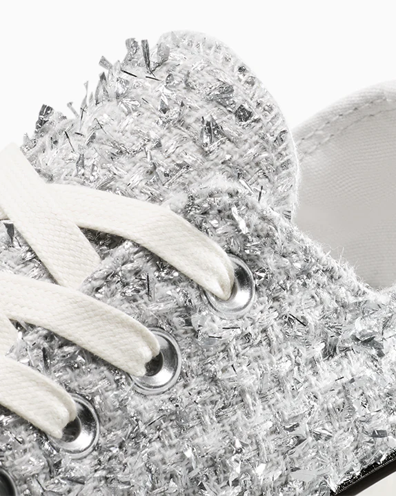 - A metallic, tweed-like woven upper adds texture and shine to any outfit