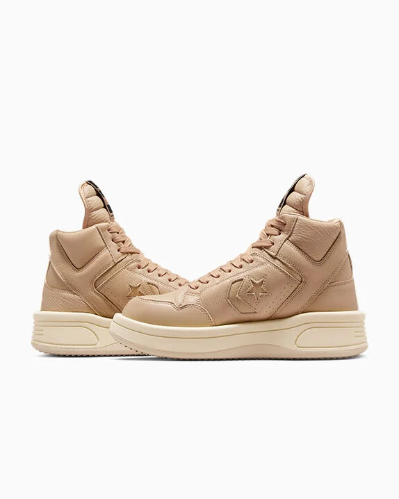 Our ongoing collaboration with DRKSHDW is back with a new, two-tone edition of its transformative Converse Weapon redesign. With a rebellious mindset to break convention, Rick Owens exaggerates the proportions and distorts the lines of the legendary basketball sneaker—reworking the original’s iconic features to send it into another dimension. The result is a distinct design that sits at the intersection of court style and subversive fashion, pairing the edge of DRKSHDW boots with the infamous swagger of the Converse Weapon.